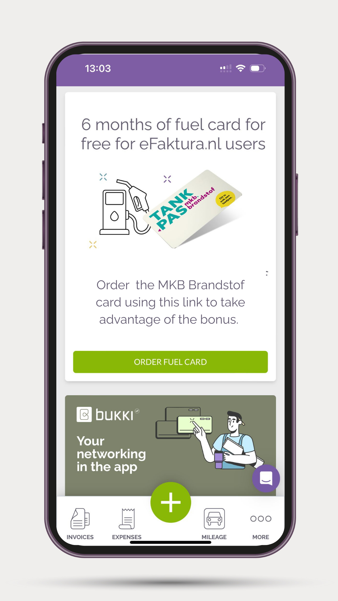 - You order the MKB Brandstof card through a special link available in the eFaktura.nl app.