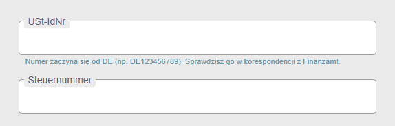 Dla lepszej przejrzystości wyraźnie rozdzieliliśmy dwa numery: VAT UE (USt-IdNr.) i lokalny numer podatkowy (Steuernummer).